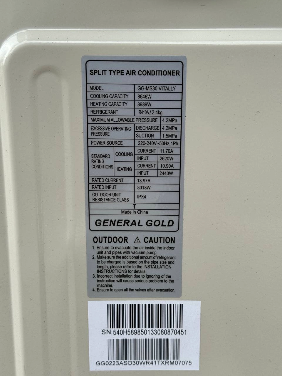 کولر گازی جنرال گلد ویتالی 30000 موتور سنگین T3
