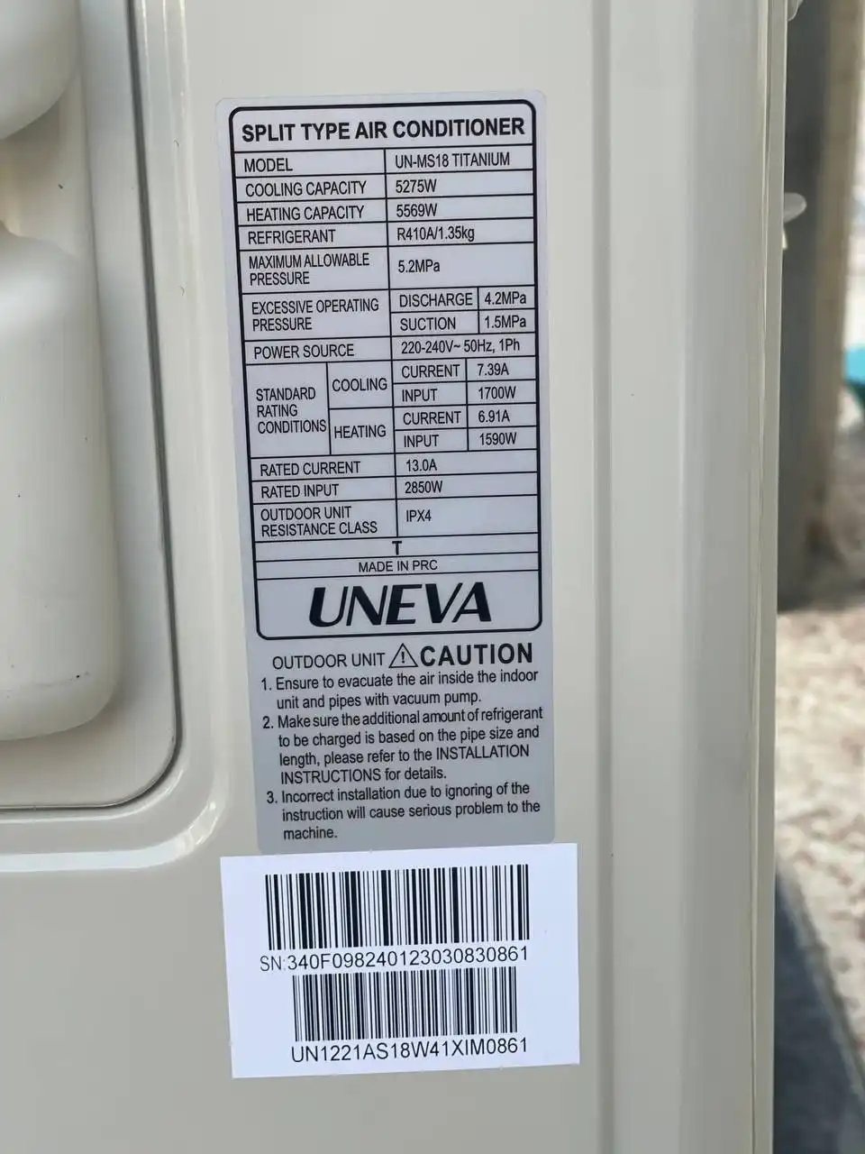 کولر گازی یونیوا تیتانیوم 18000
