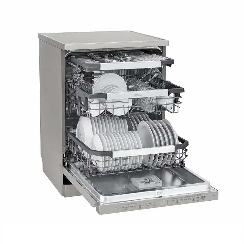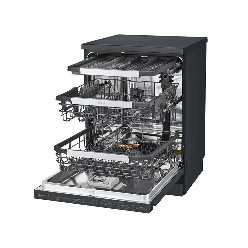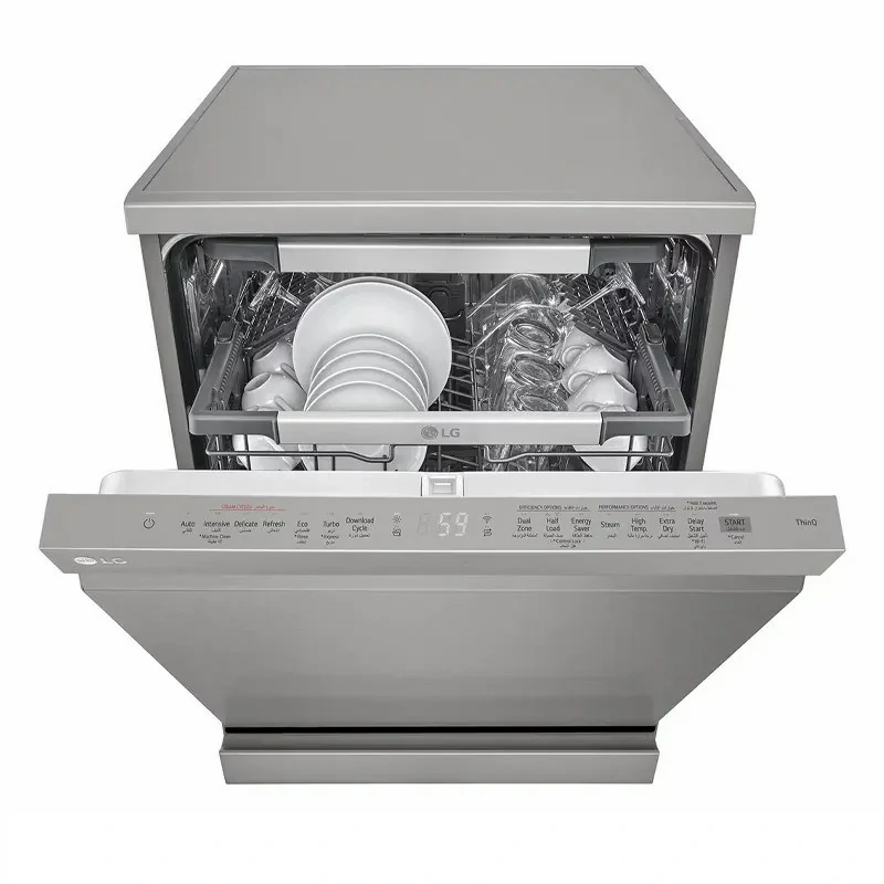 بدنه استیل ضد زنگ ,برنامه LG ThinQ برای کنترل و مدیریت ماشین ظرفشویی از طریق موبایل (مخصوص موبایل های اندرویدی و iOS) ,پشتیبانی از اینترنت اشیا (IoT) برای مدیریت و کنترل ماشین ظرفشویی از راه دور ,تضمین عملکرد و کارای موتور Inverter Direct Drive تا 10 سال توسط ال جی ,تکنولوژی QuadWash و اسپری آب توسط 4 بازو برای تمیز کردن کامل ظروف ,تکنولوژی TrueSteam برای شستشو و خشک کردن کامل ظروف ,دارای سنسور تشخیص میزان کثیفی آب و ظروف (Soil Sensor) ,سیستم EasyRack Plus برای تنظیم سبدها ,سیستم RackMatic برای تنظیم سبد در 3 حالت ,سیستم Smart Diagnosis برای عیب یابی هوشمند ,سیستم Water Softener برای کاهش سختی آب ,قابلیت Adjustable Leg برای تنظیم پایه ها تا 30 میلیمتر ,قابلیت Auto Opening Door برای باز شدن خودکار درب بعد از اتمام شستشو و خشک کردن بهتر ظروف |